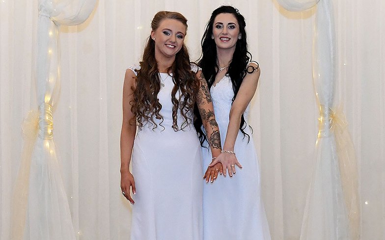 Belfast couple Robyn Peoples, 26, and Sharni Edwards, 27, became the first same-sex couple to get married in Northern Ireland on Tuesday (11 February), following the historic change in the law last year.