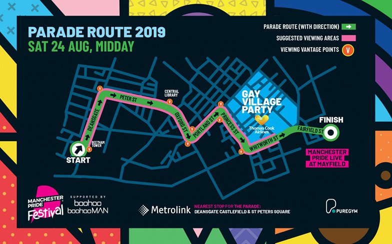 The parade kicks off at mid-day on Saturday 24 August, beginning on Deansgate before heading through Peter Street, Oxford Street, Portland Street, Princess Street, Whitworth Street and ending on Fairfield Street.