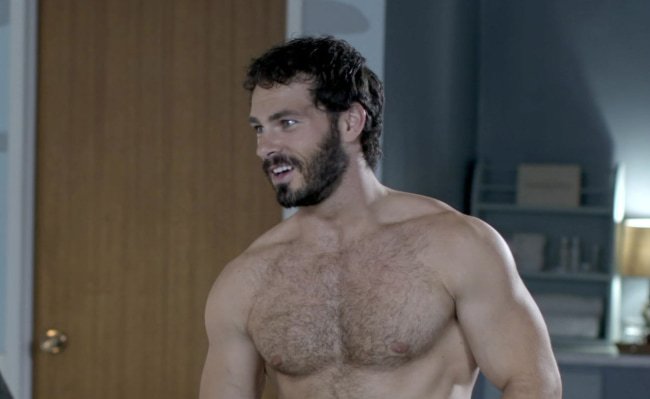 Romantic comedies are hit or miss when it comes to male nudity, but this one is a hit. he seems to scratch that Hugh Jackman itch – with his hot beard, very hairy chest, and ripped action figure body.