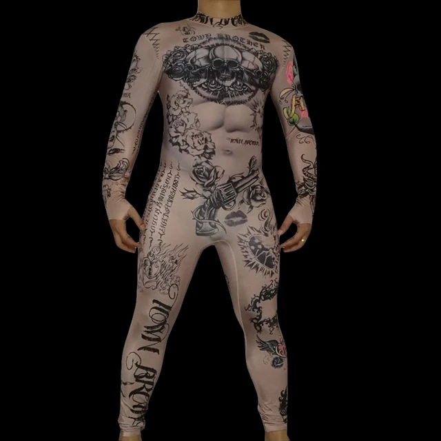 Tattoo Printed Nude Illusion Drag King Bodysuit (2 Options)