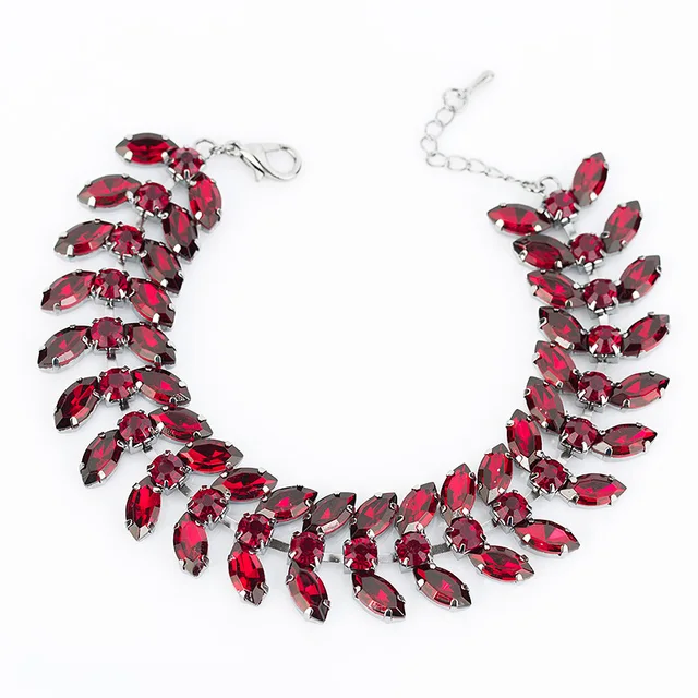 Drag Queen Silver Rhinestone Leaves Bracelet