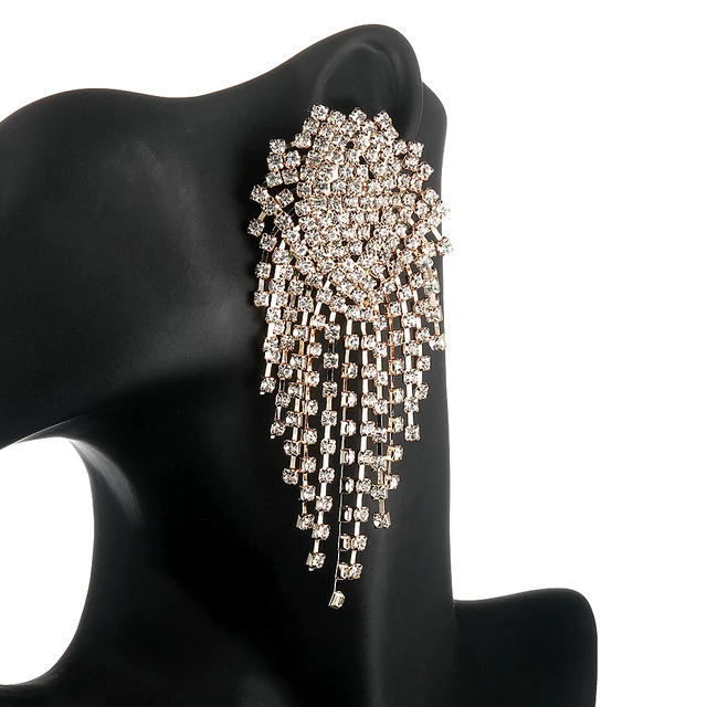 Luxurious Rhinestone Tassel Drop Earrings