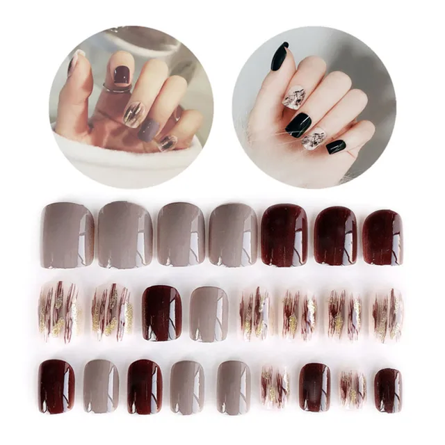 Shiny Short Square Acrylic Fake Nails (Set Of 24)