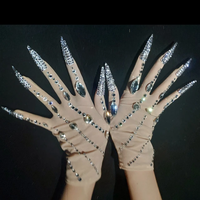 Sparkly Rhinestone Mesh Drag Queen Nail Gloves
