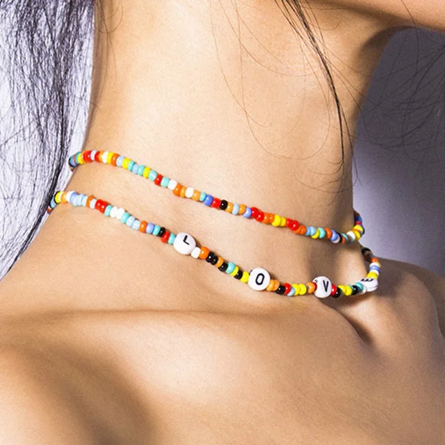 Handmade Rainbow Love Beaded Choker Necklace (Set Of 2)