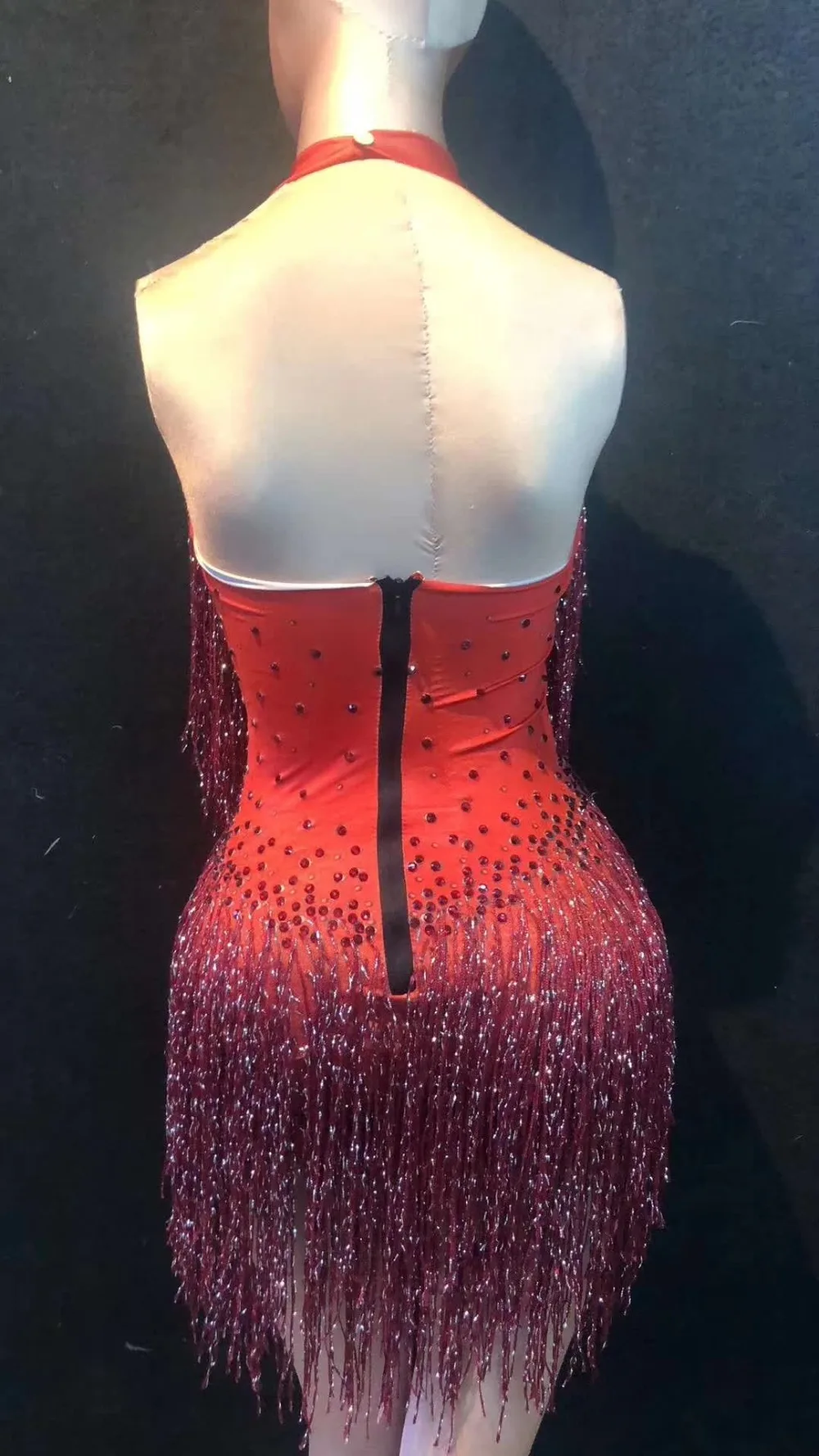 Beyonce-Inspired Elastic Fringe Rhinestone Dress (Various Colors)