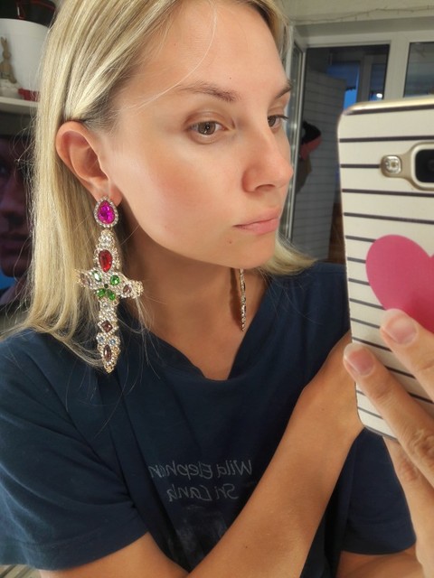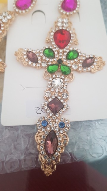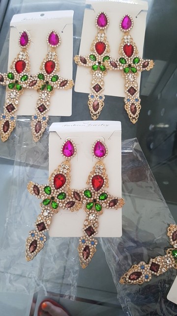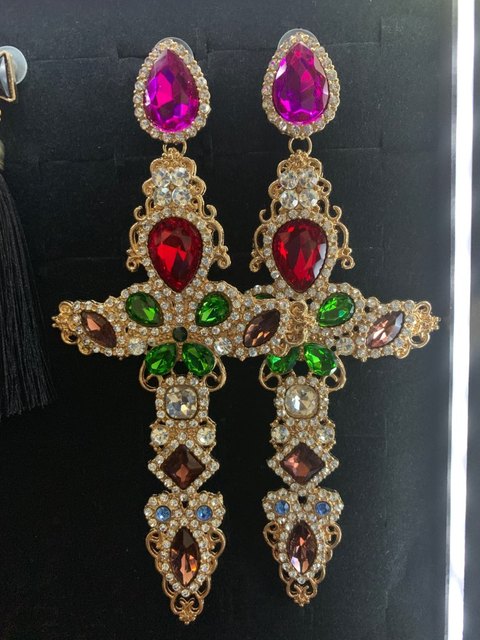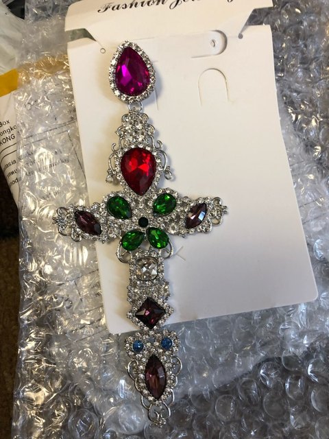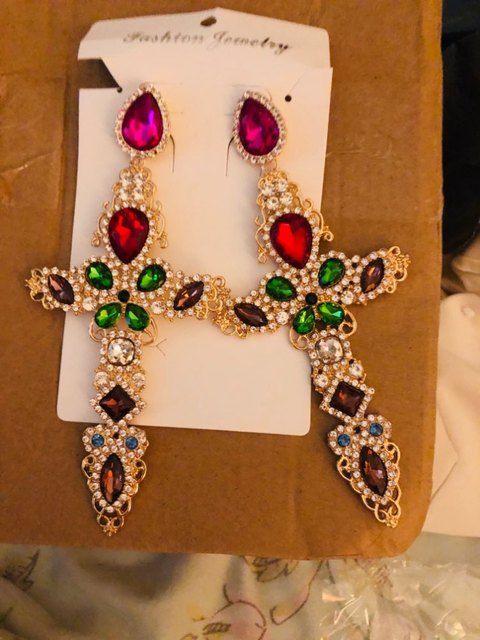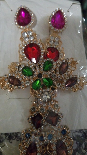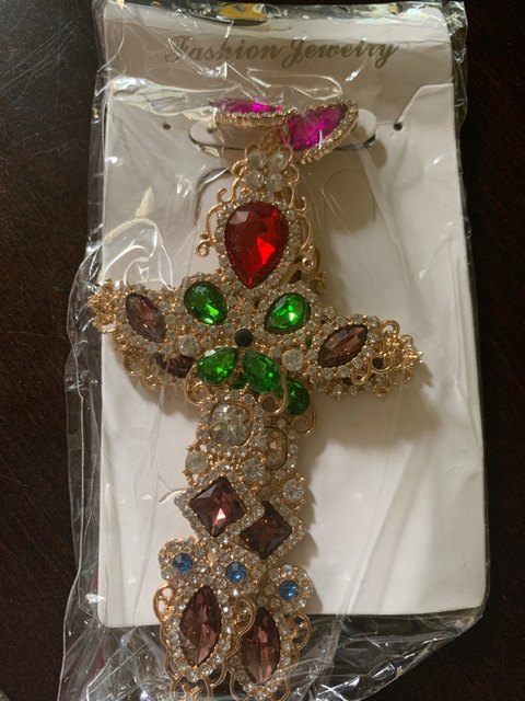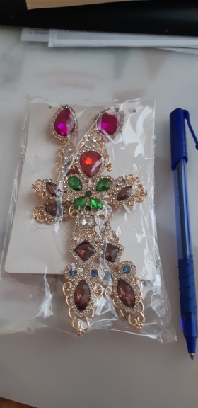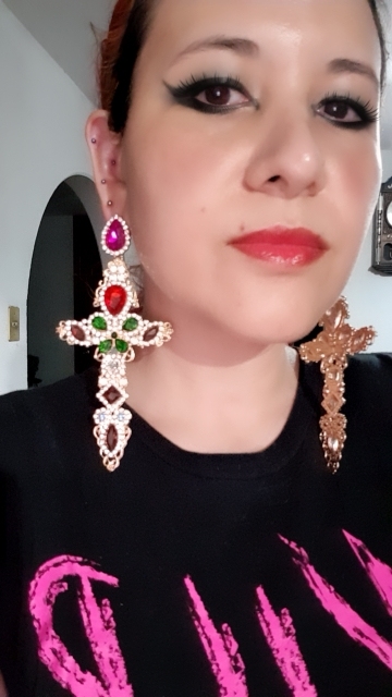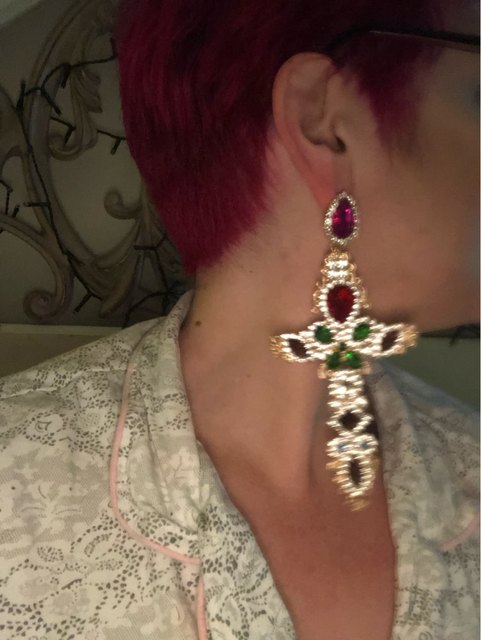 The cross earrings are very massive, shiny unrealistically cool. The clasp is weak, but holds. I’m happy
