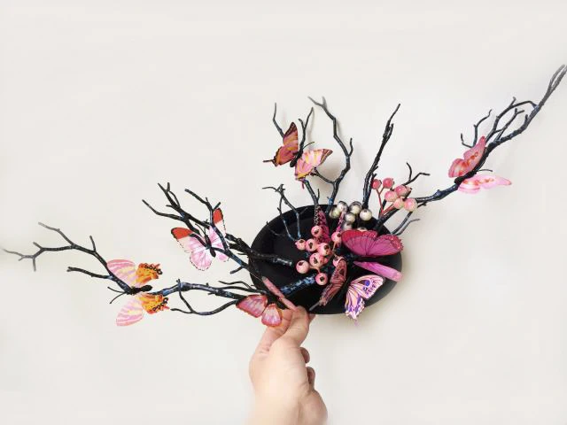 Our Butterflies Tree Branch Fascinator Headpiece is the perfect addition to your outfit. This stylish headwear is loved by drag queens, female impersonators, transgender women, and queer fashionistas. Order yours today and get an amazing deal in Butterflies Tree Branch Fascinator Headpiece.