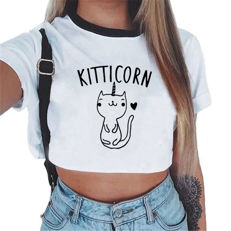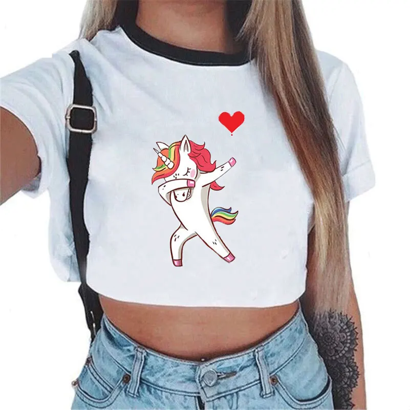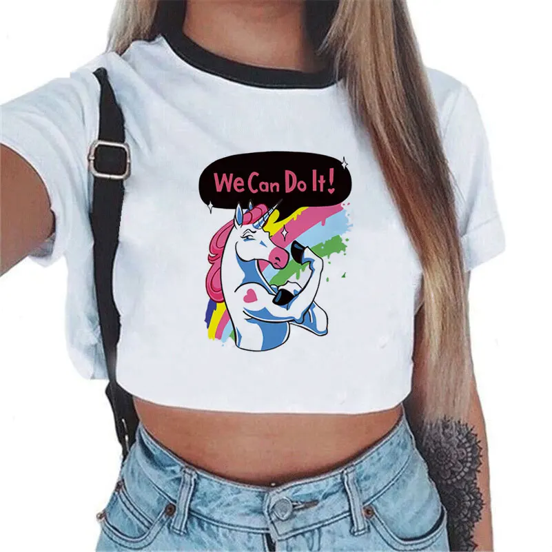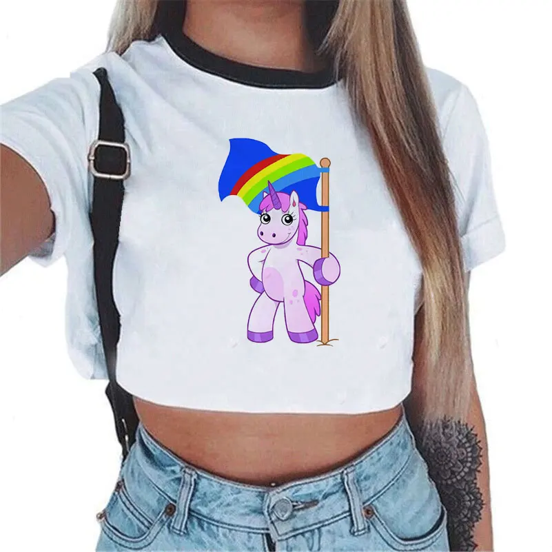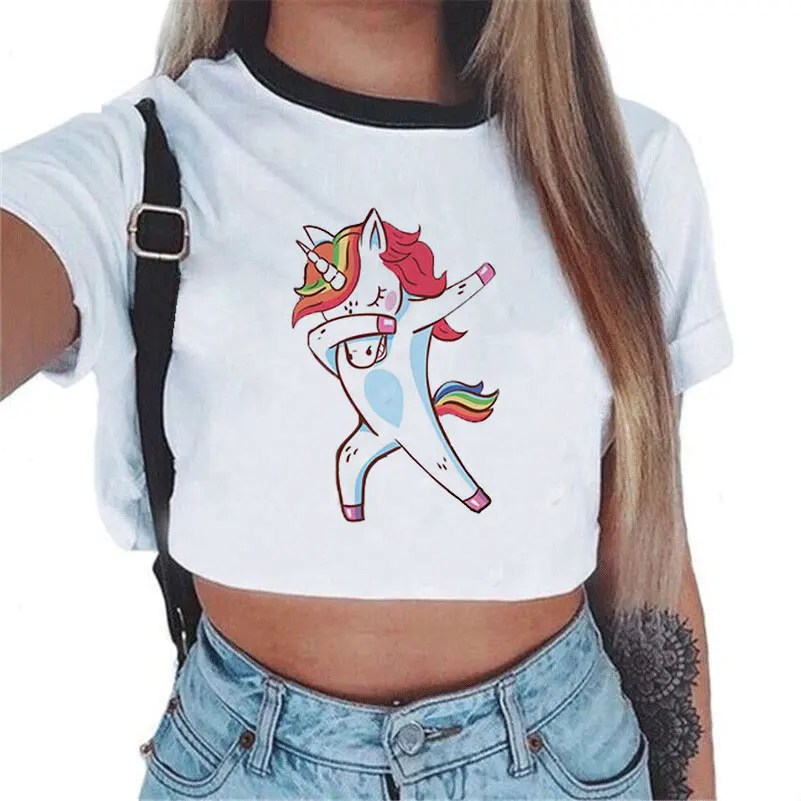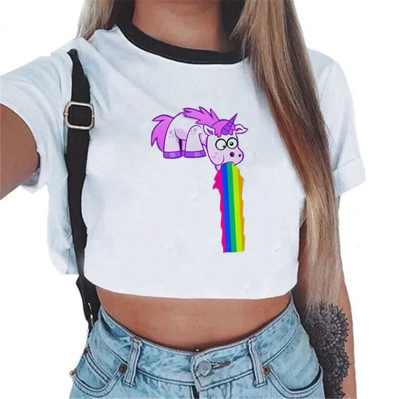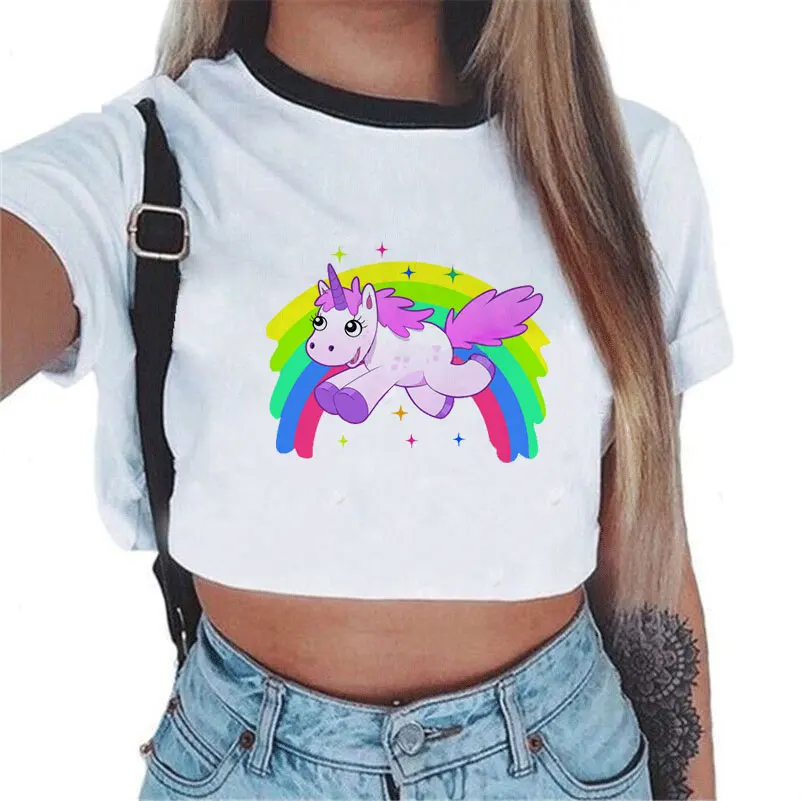 Cartoon Rainbow Unicorn Women’s Crop Top Shirt (Various Designs)