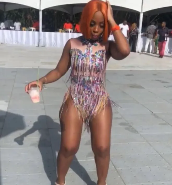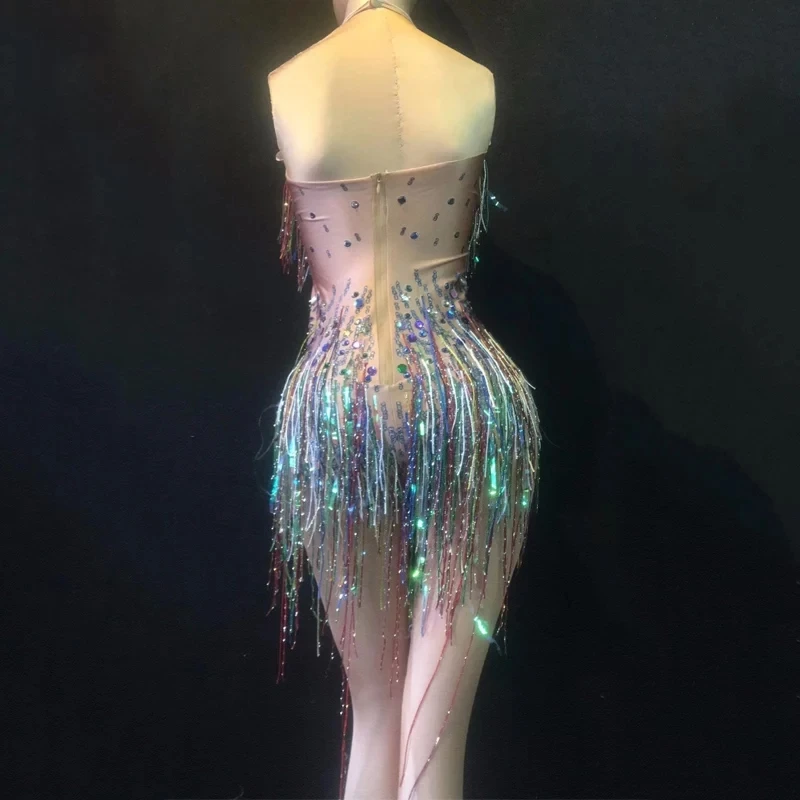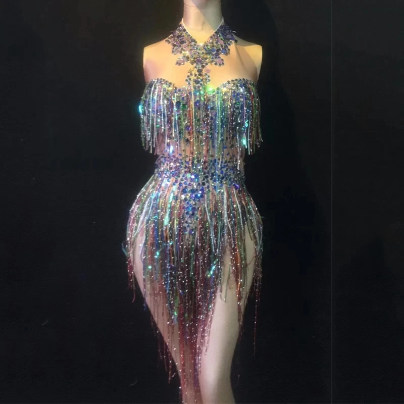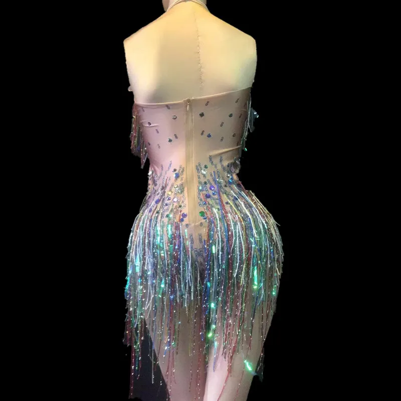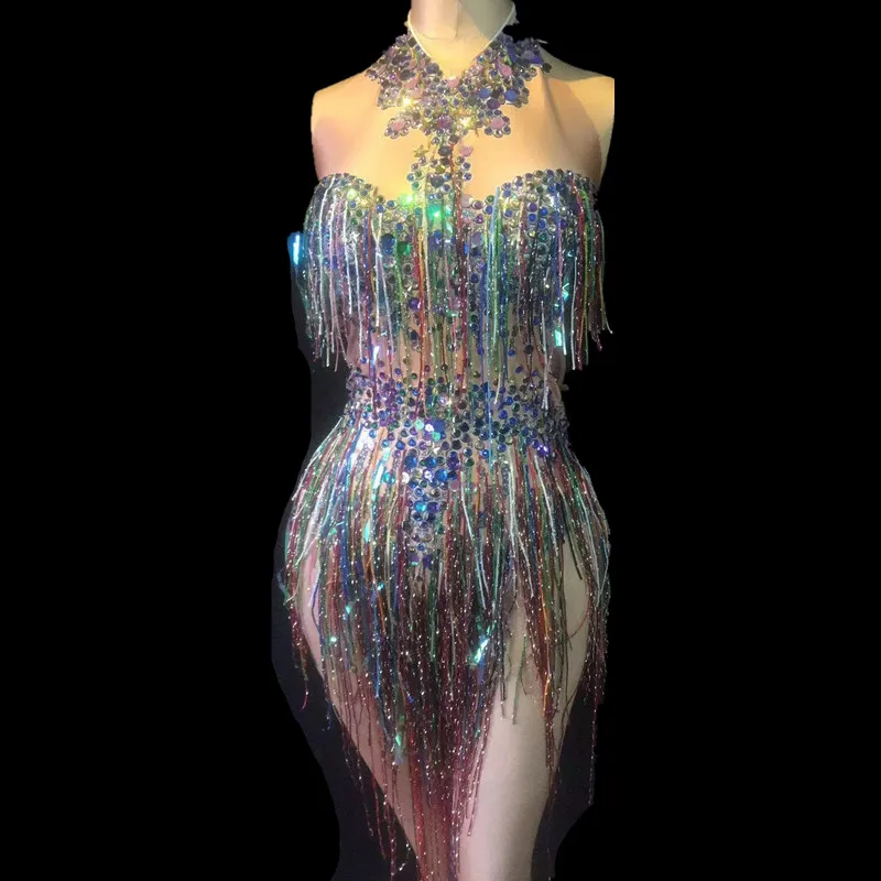 Drag Queen Sparkling Crystals Fringe Bodysuit