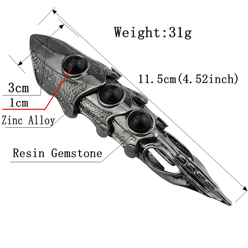 Material:Zinc alloy + Black gun plating+Resin Precious Stone