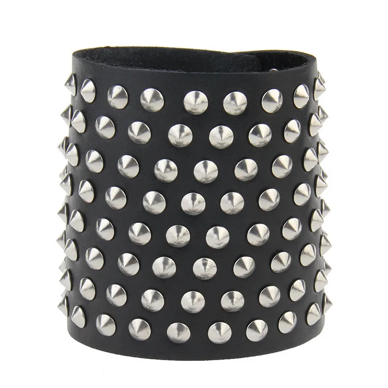 This Faux Leather Rivet Wristband is decorated with rivet heads that are sure to grab everyone’s attention. It makes a fantastic addition to your drag accessory collection. Shop our Faux Leather Rivet Wristband for a punk and fun look!
