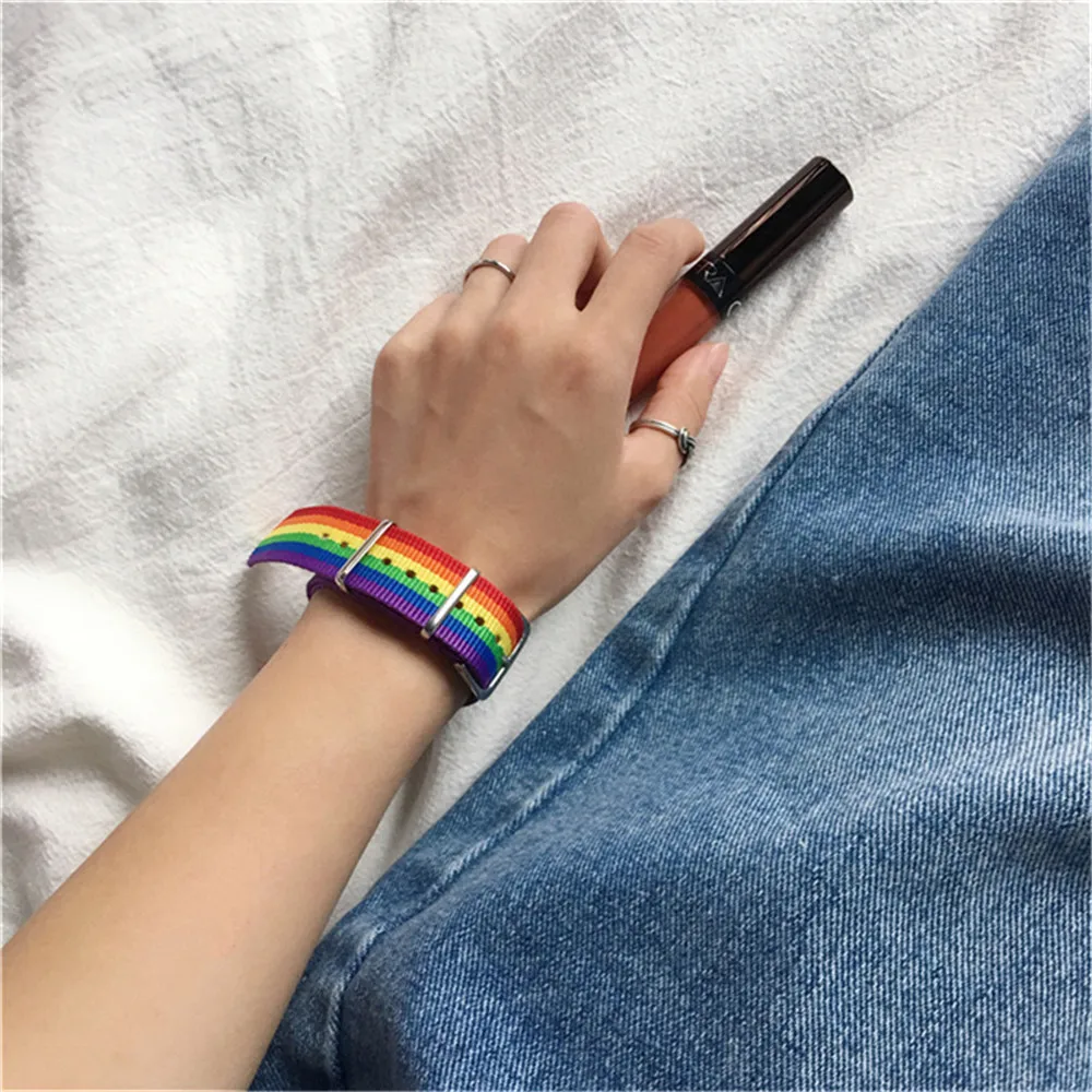 Showcase your gender identity and individuality with our Gay Pride Rainbow Nylon Strap Bracelet. With this accessory, you can send a message of support for the LGBTQ+ community. Get our Gay Pride Rainbow Nylon Strap Bracelet at a very affordable price. Free worldwide shipping is included when you order our Gay Pride Rainbow Nylon Strap Bracelet today!