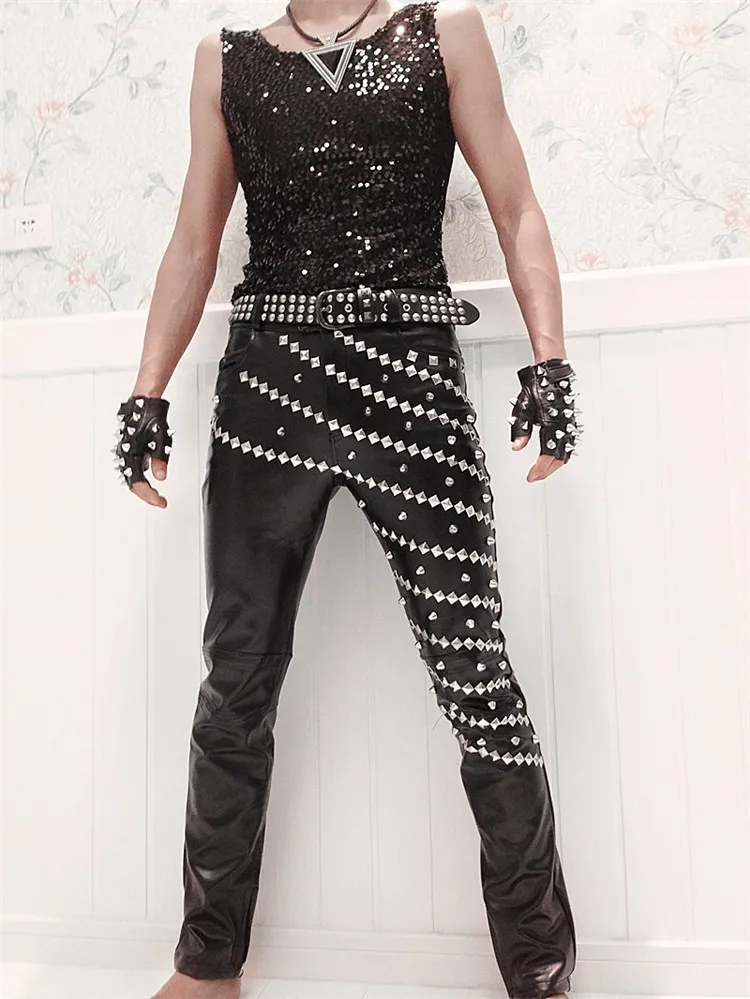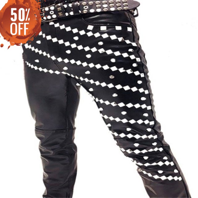 Achieve a fierce look with our Gothic Punk Rivet Faux Leather Pants. It is a must-have for all drag kings and male impersonators out there! Free worldwide shipping is included when you order our Gothic Punk Rivet Faux Leather Pants today! Buy now!