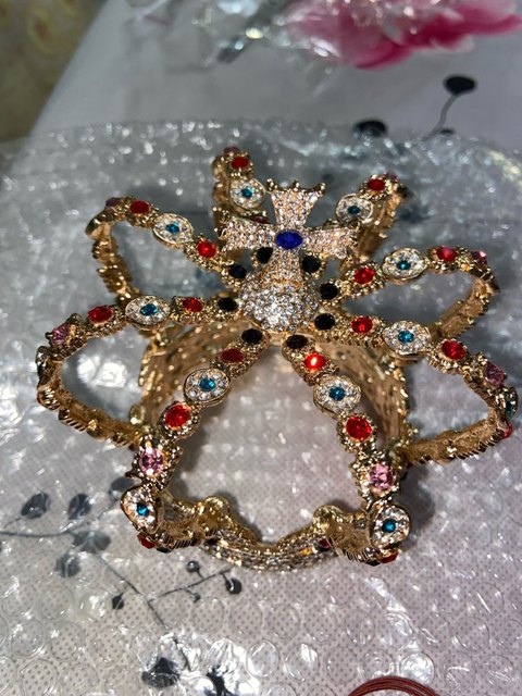 The store packed the order very well, the Crown was in the inflated package, and the package in the reinforced inflatable package. The order arrived whole, without damage. The crown is made well, although at the close examination it can be seen that it is as if twisted. Overall ok.