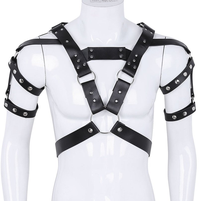 Our Leather Gay Fetish Zentai Harness Belt is designed with adjustable snap straps. It virtually fits most, is easy to wear and easy to unbutton. It comes with 13 metal O rings and studs, shoulder straps with arm harness belt, and Y shape back. Our Leather Gay Fetish Zentai Harness Belt is made with strong durable materials. It is comfortable and flexible to wear.