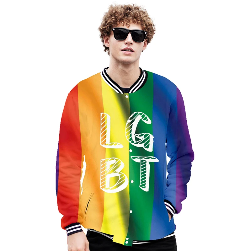 Our LGBT Pride Rainbow Printed Baseball Jacket is surely one to be proud of. This will showcase your personality and your individuality and send a message of support for the LGBTQ+ community. Get our LGBT Pride Rainbow Printed Baseball Jacket at an unbeatable price. Free worldwide shipping is included when you order our LGBT Pride Rainbow Printed Baseball Jacket today!