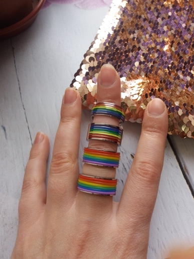 Quality is super. Rings made of steel, so it’s not scary to wash with them, they will not blacken. Rainbow painted qualitatively. Rainbow silicone rings