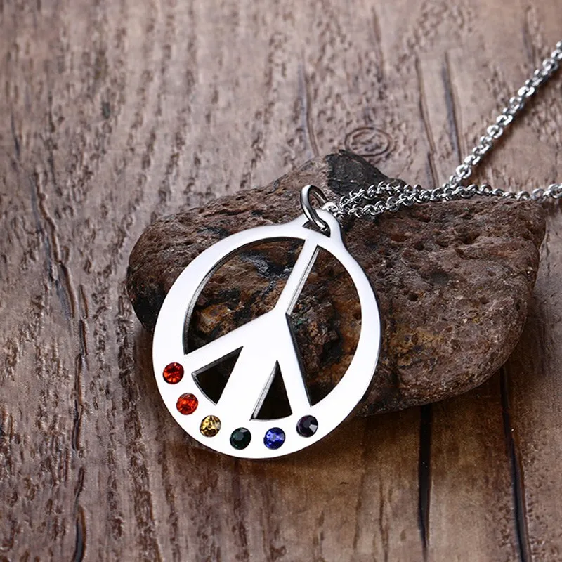 LGBT Rainbow Pride Peace Rhinestone Necklace