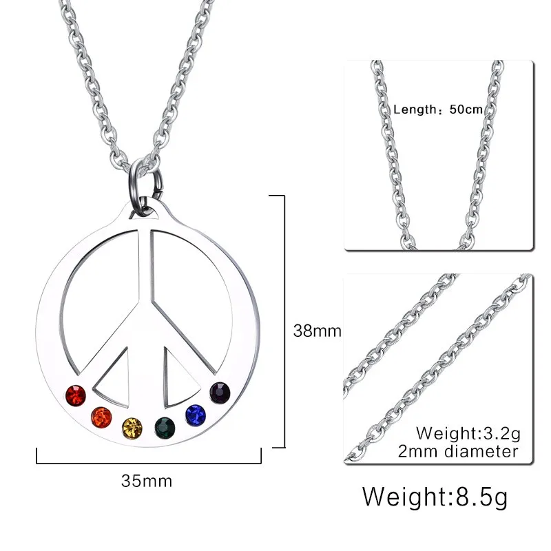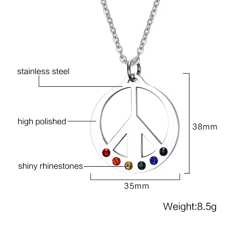Our LGBT Rainbow Pride Peace Rhinestone Necklace is made with high quality stainless steel that has high resistance to rust, corrosion and tarnishing. Stainless steel is one of the most bio-compatible metals, so our LGBT Rainbow Pride Peace Rhinestone Necklace is amazingly hypoallergenic because of its anti-allergic properties. Order yours today and get the best pricing in LGBT Rainbow Pride Peace Rhinestone Necklace. Free worldwide shipping is provided when you purchase at our shop.