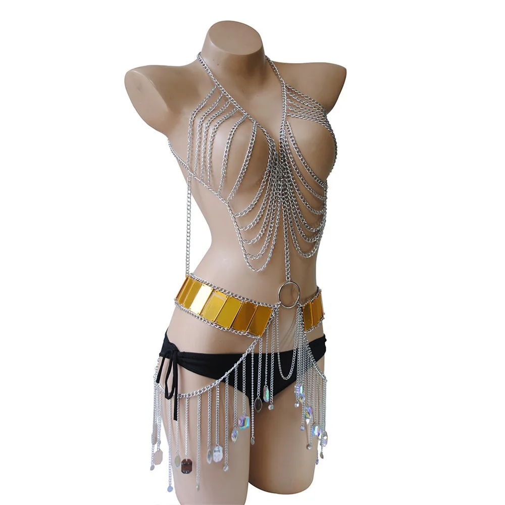 Long Metal Tassel Body & Waist Chain Harness (Gold Or Silver)