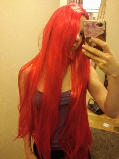 The wig is very good quality, the hair does not fall out, confused (if it is a party and not a photo shoot), but can be combed. I liked the color very much, it is bright, not like in the photo, but I was waiting for the comments. Came in time, just to Hallin.