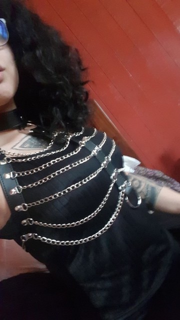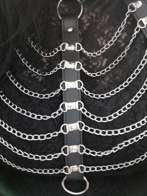 love it. adjustable fit. like a very nice goth ribcage made of chains. very good