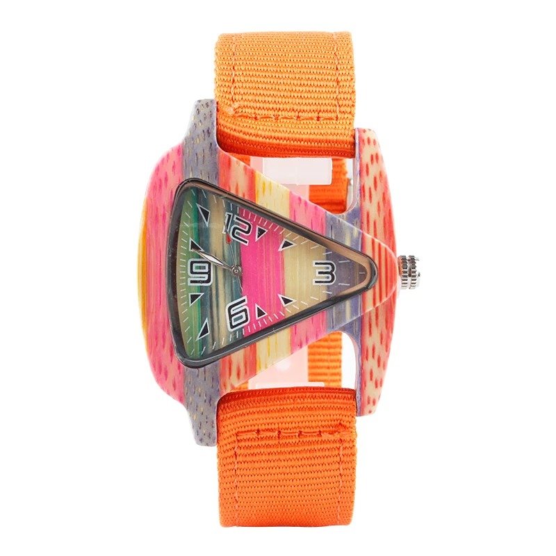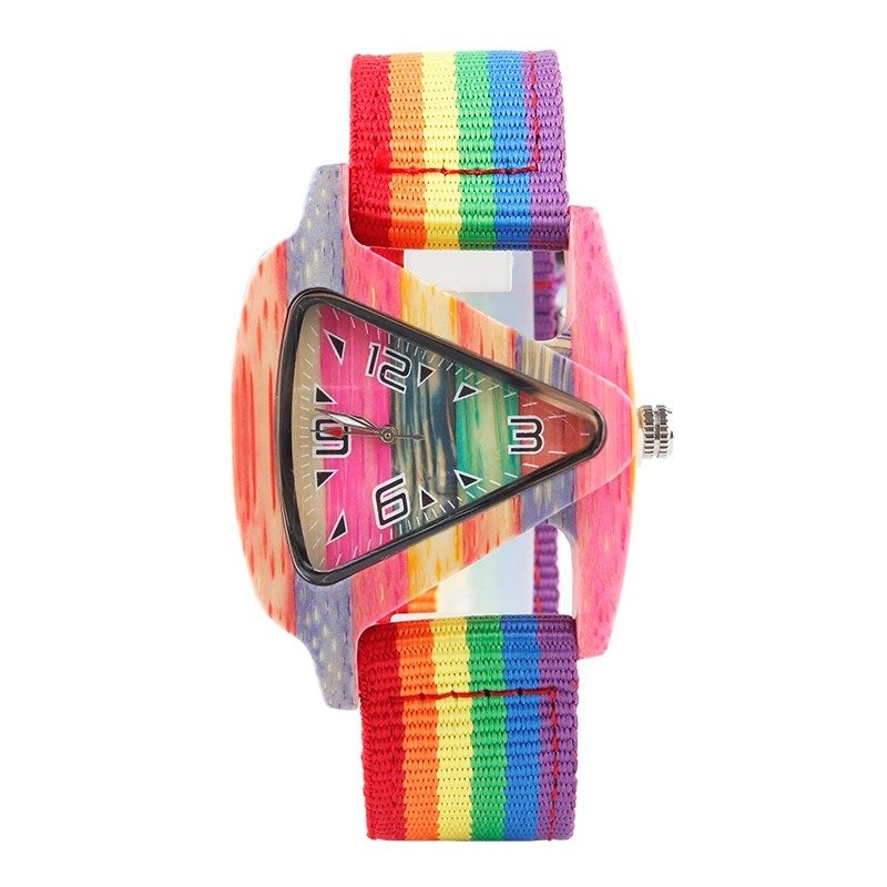 Rainbow Gay Pride Bamboo Wood Triangle Wristwatch