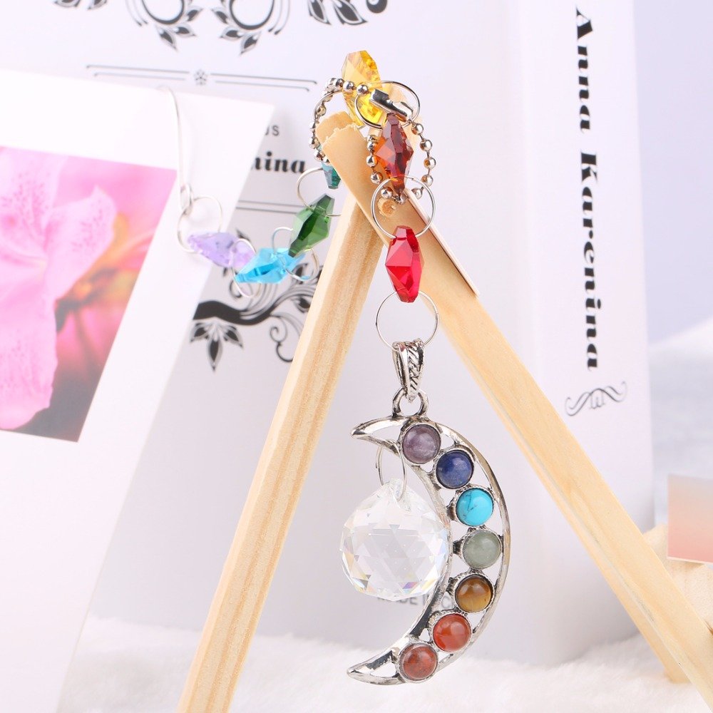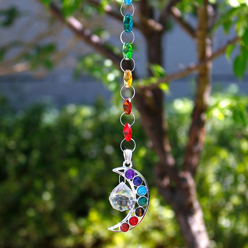 Rainbow Half-Moon Hanging Chakra Crystal Suncatcher