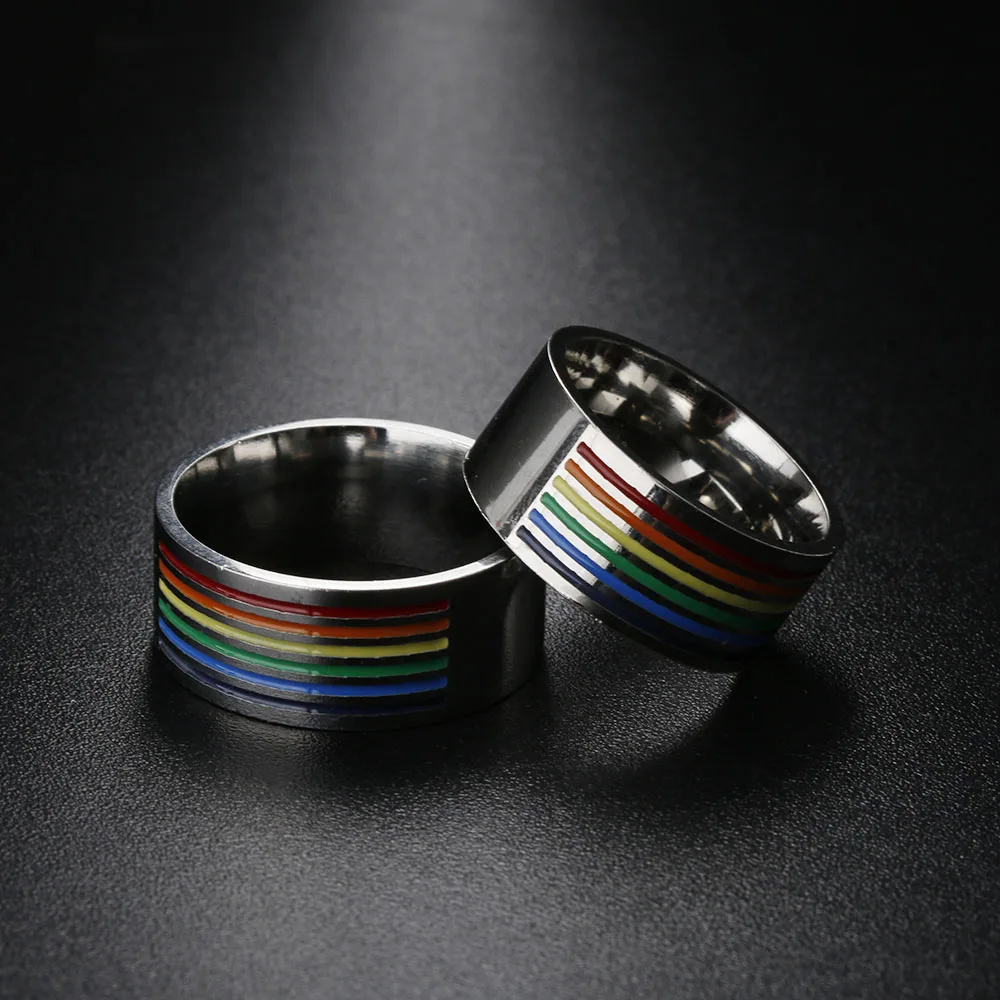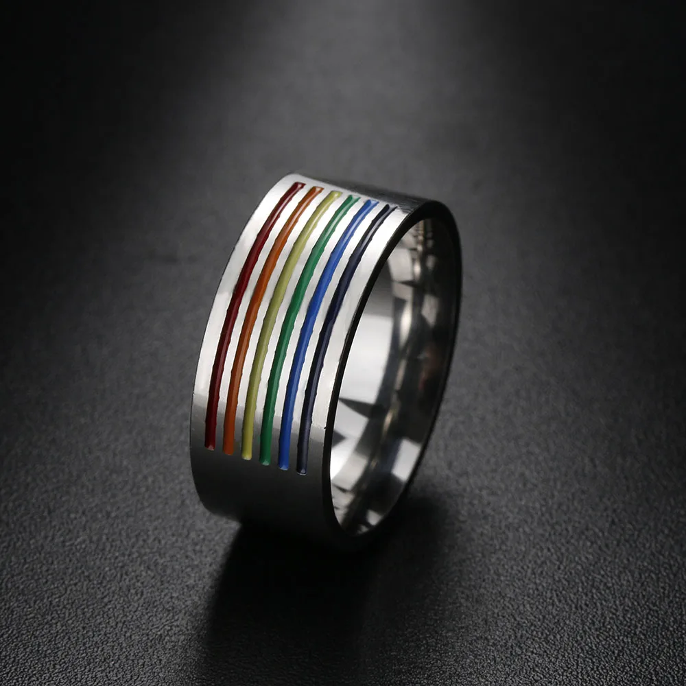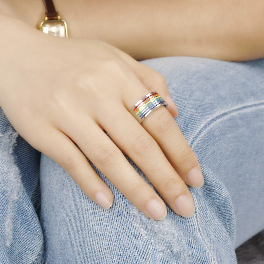Flaunt your queerness  with our Rainbow Pride Engraved Enamel Ring! Made with high quality materials, it is a great accessory that will show off that you are proud of who you are. Our Rainbow Pride Engraved Enamel Ring is not only fashionable but also a great way to display your LGBT pride to the entire world. Buy yours today and enjoy an amazing deal in Rainbow Pride Engraved Enamel Ring.