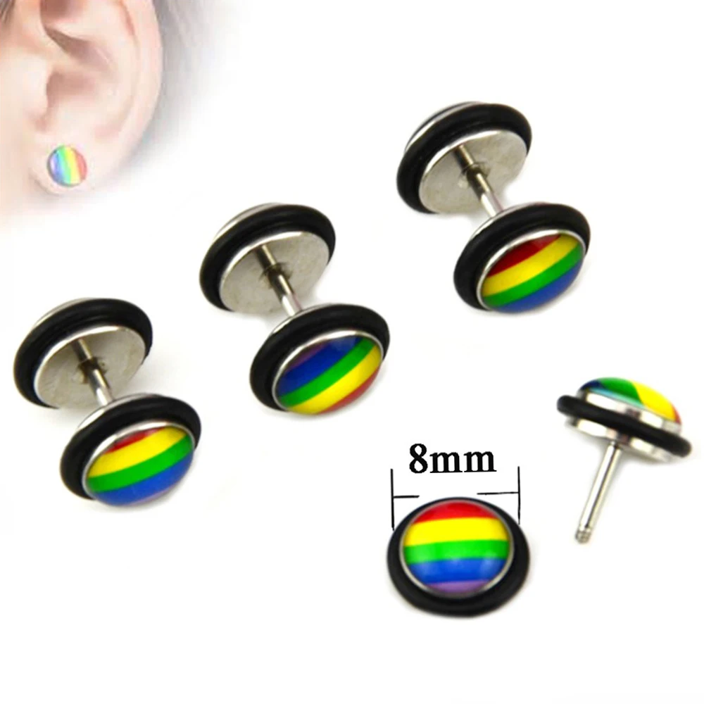 Wearing our pair of Rainbow Pride Fake Plug Earrings is a fantastic way to show the world that you are proud of who you are. They can fit any standard size earring hole and they give off the illusion that you are wearing an actual plug. You will surely stand out from the crowd sporting our fashionable Rainbow Pride Fake Plug Earrings made with quality stainless steel. Order yours today!