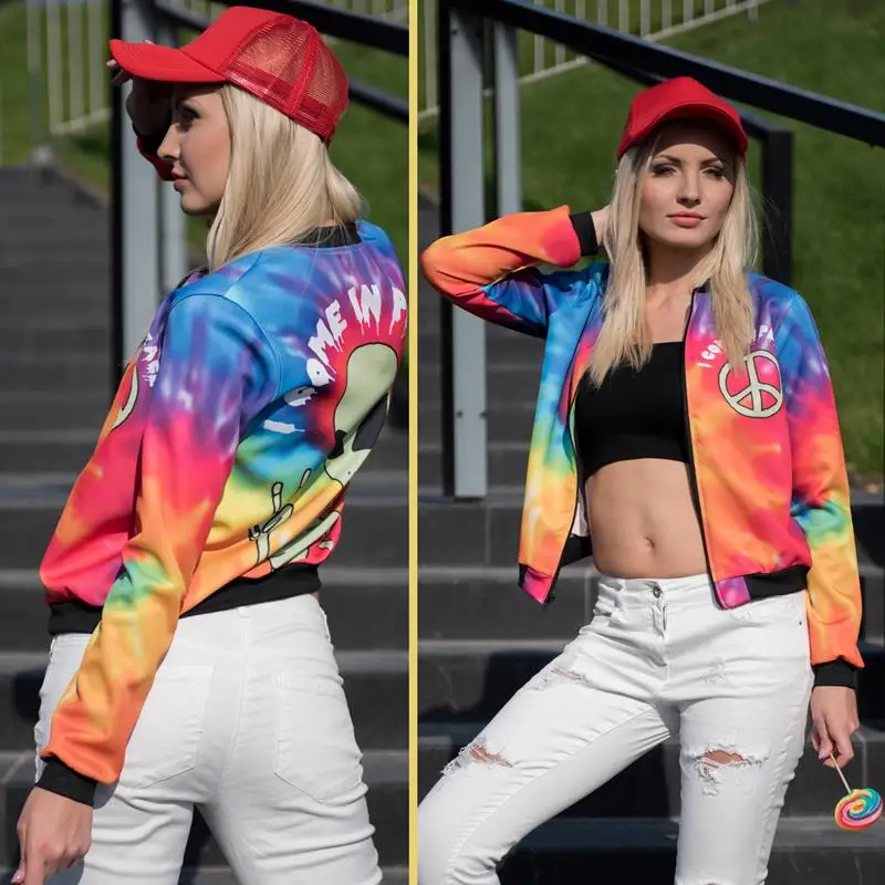 Show off your queer spirit with our Rainbow Pride “I Come In Peace” Bomber Jacket . This LGBT themed merchandise is a fantastic means to declare that you are a proud member or supporter of the gay community. For sure, you’ll get tons of compliments on it. Our Rainbow Pride “I Come In Peace” Bomber Jacket makes a fantastic addition to your gay pride apparel collection. Order yours today and enjoy an unbeatable price in Rainbow Pride “I Come In Peace” Bomber Jacket.