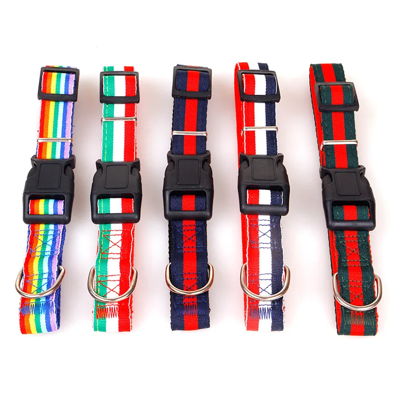 Rainbow Striped Strong Nylon Pet Dog Collar