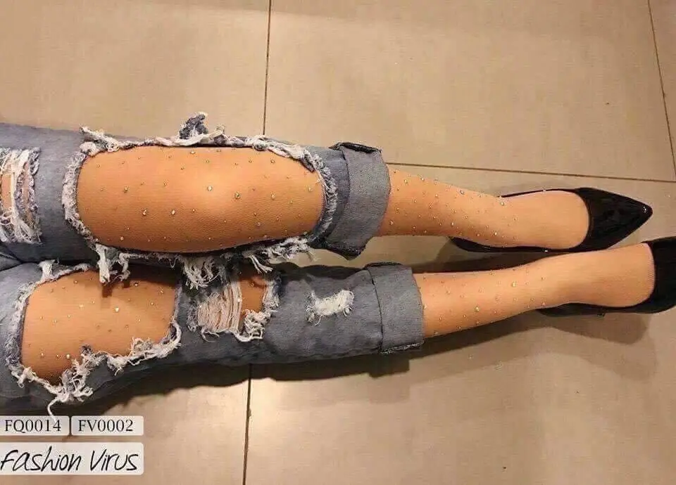 Complete your look with our Rhinestone Crystal Embellished Sheer Stockings. It is a must-have for all drag queens out there! Free worldwide shipping is included when you order our Rhinestone Crystal Embellished Sheer Stockings today! Buy now!