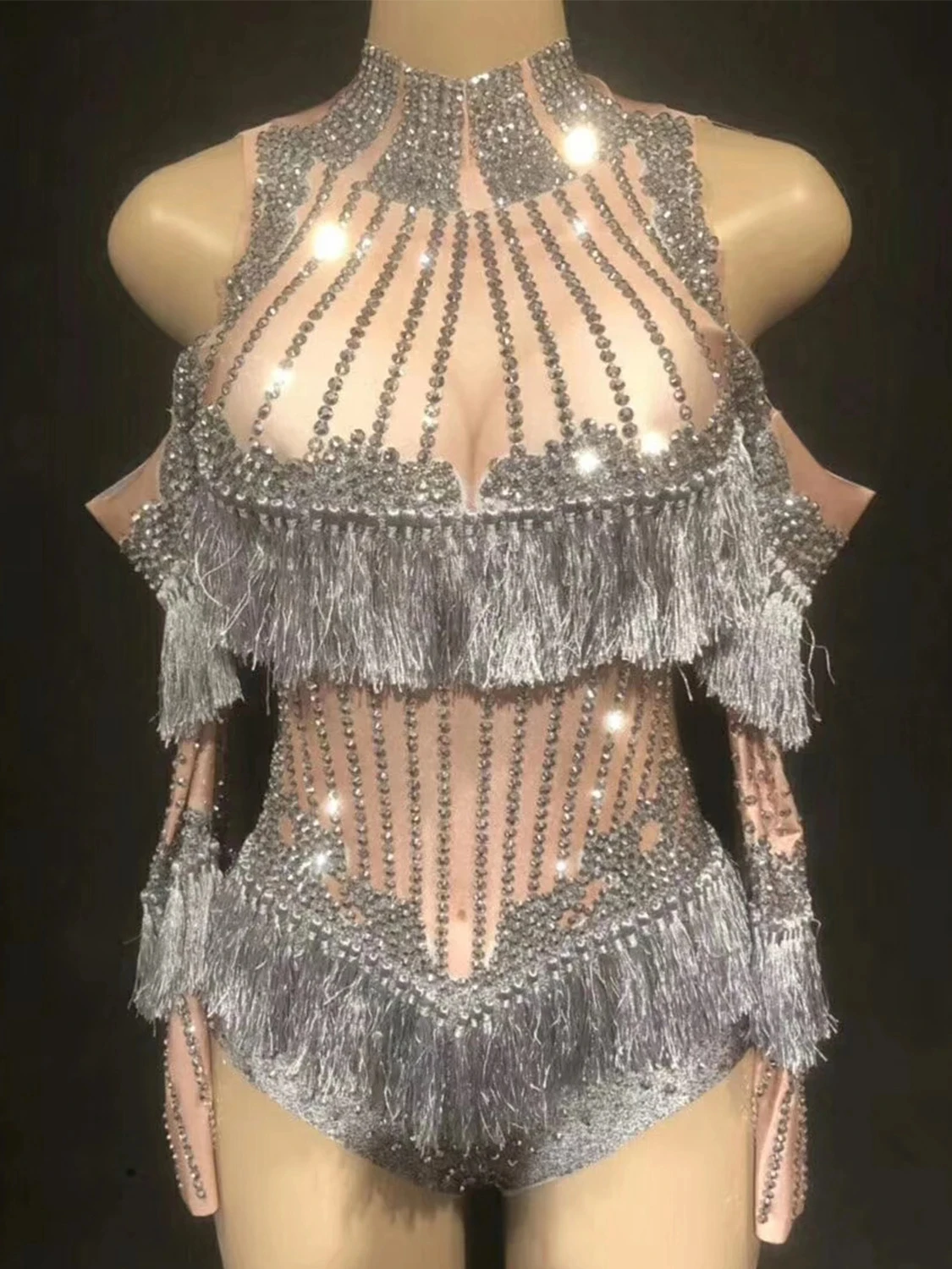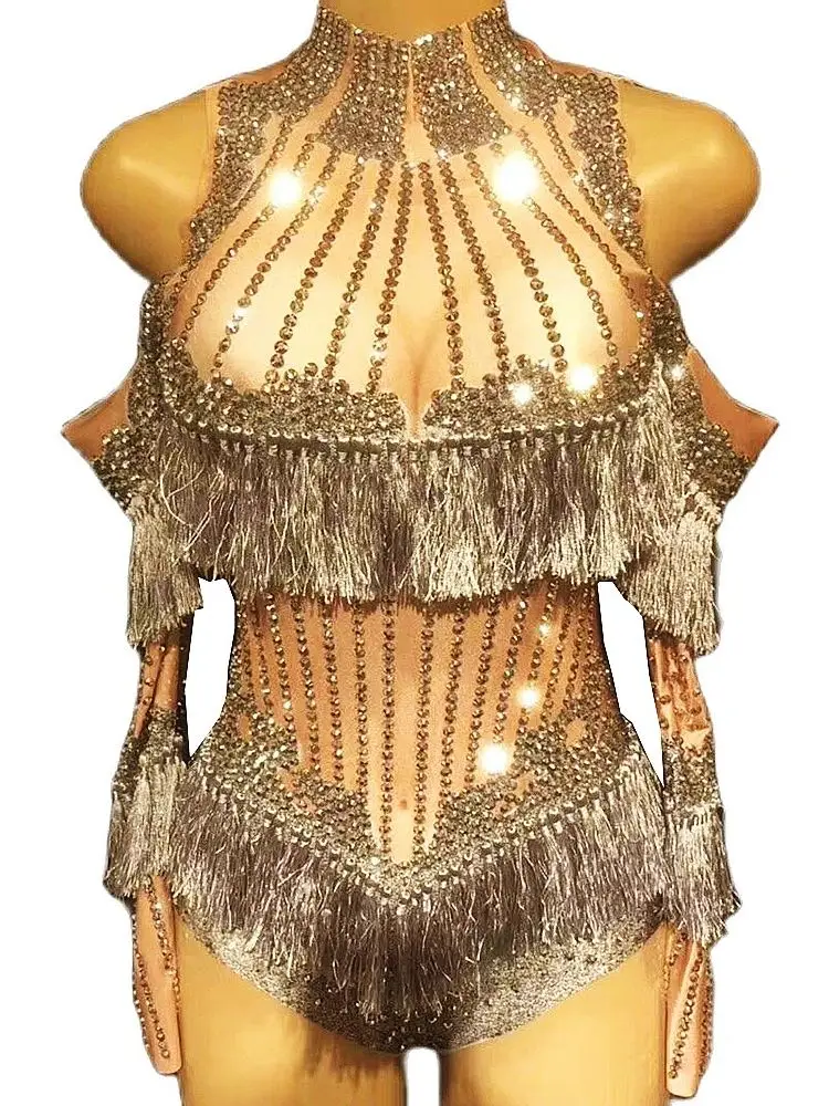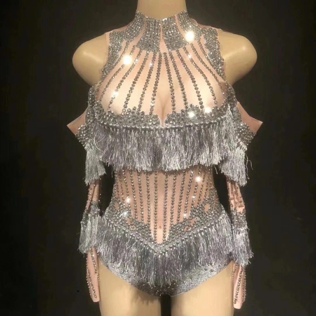 Rhinestone Glitter Fringe Drag Queen Bodysuit