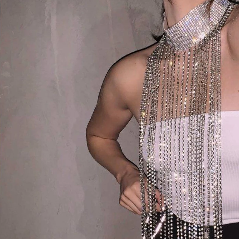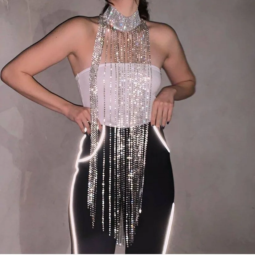 Grab a bargain today with our Rhinestone Tassel Body Jewelry Chain Choker. With its beautiful design, it will surely compliment any outfit as well as turn heads. It makes a fantastic addition to your drag accessories. Order yours today and get the best deal in Rhinestone Tassel Body Jewelry Chain Choker.