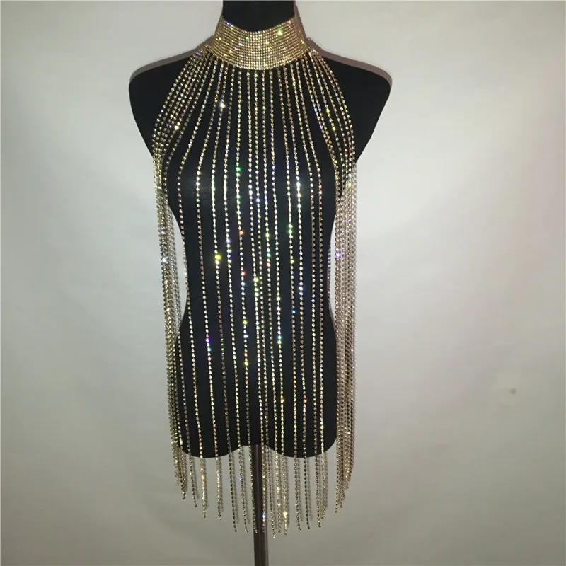 Rhinestone Tassel Body Jewelry Chain Choker (Gold Or Silver)