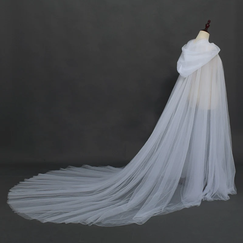 Two Layers Tulle Long Cape With Hood