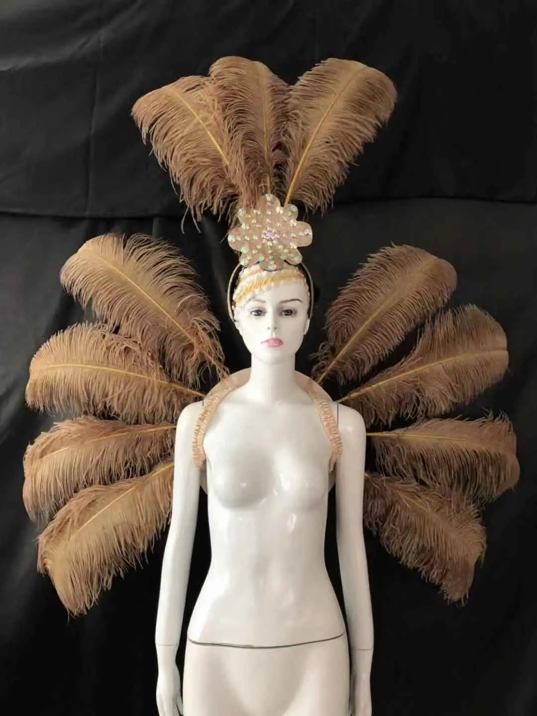 Stand out from the crowd wearing our Showgirl Feather Headdress & Backpiece Costume Set. It makes a fantastic addition to your drag closet. Order yours today and get the best deal in Showgirl Feather Headdress & Backpiece Costume Set.