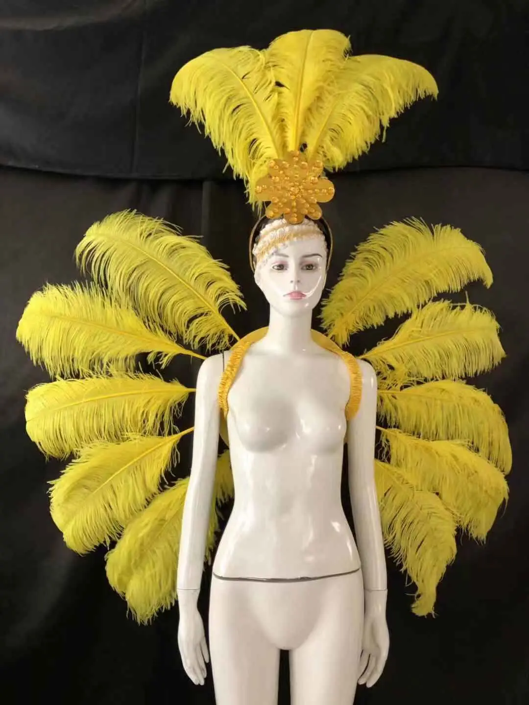 Showgirl Feather Headdress & Backpiece Costume Set (Various Colors)