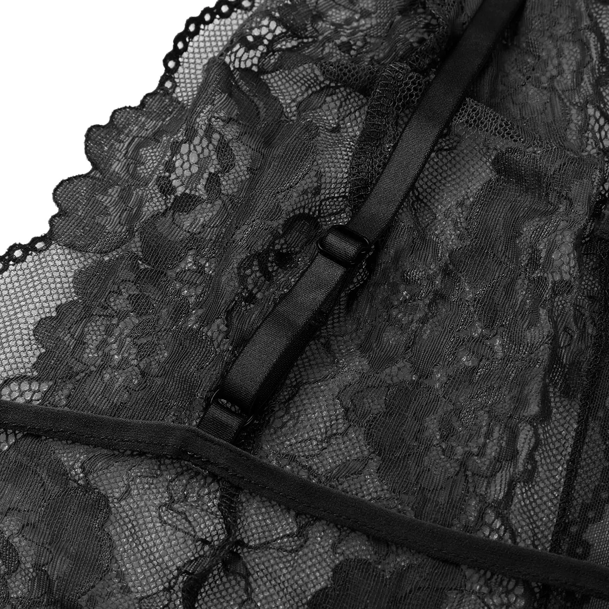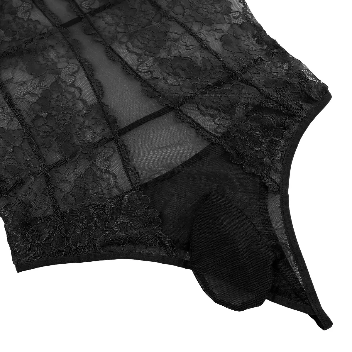 Floral lace pattern in the front, front with bulge pouch, see through design.