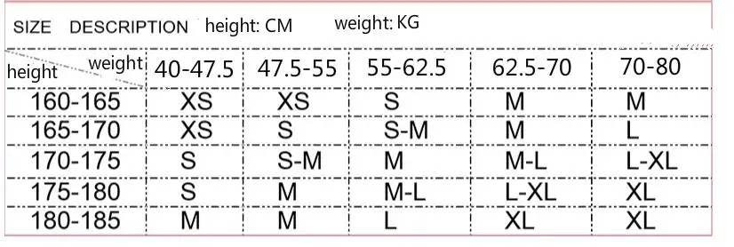 S suitable for weight 47-55kg;