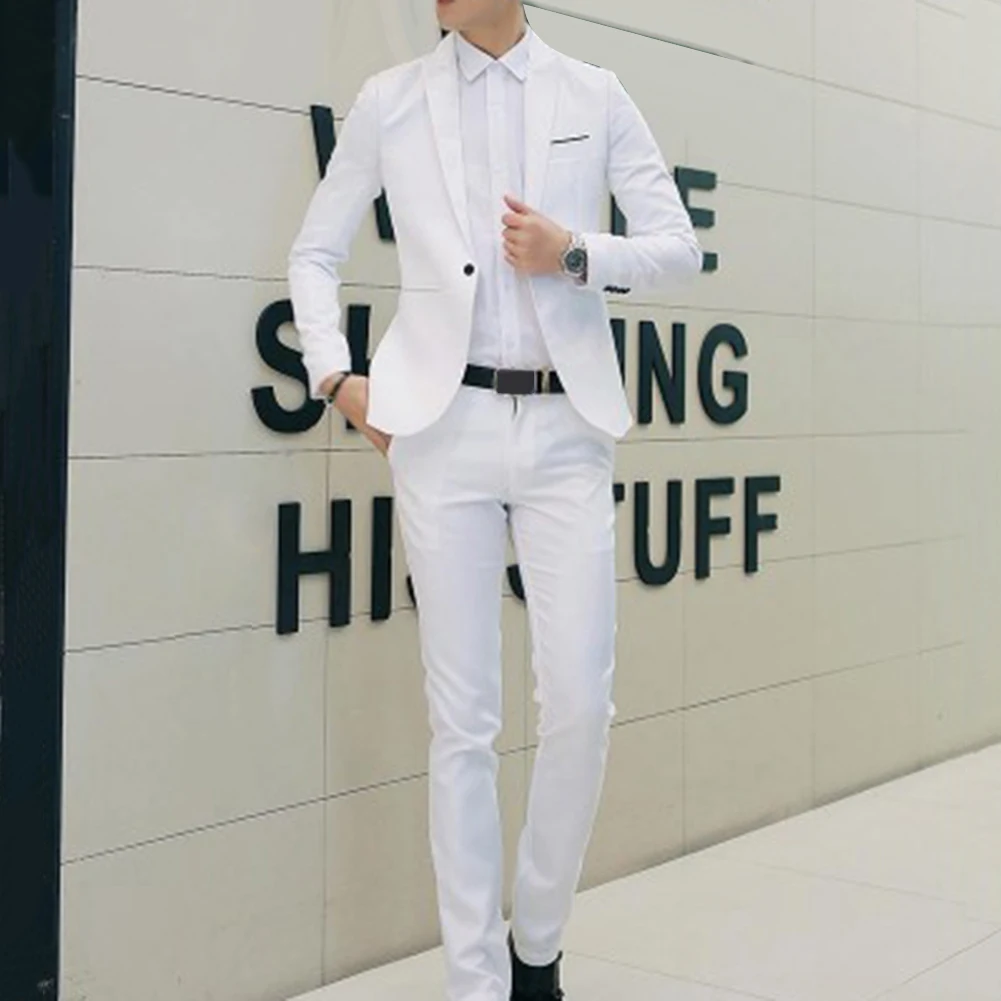 Solid color slim blazer and suit pants in one set, simple yet stylish.