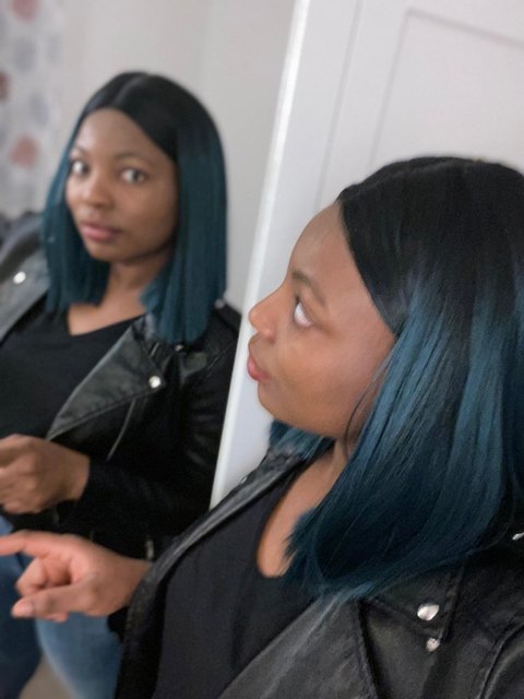 Package arrived in less than 10 days. Hair was packaged nicely to maintain shape of wig. Hair clearly feels synthetic, however its super silky and has a lot of movement. Wig looks great on. This teal colour is popping. I’ve received loads of compliments when I wore this wig.