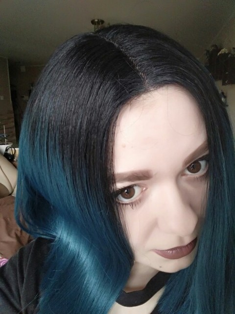 i cannot believe how cheap and beautiful this wig is. I chose the green ombre one and i love it, the color swich to green/turquoise (light) to almost black (night/dark). it’s a little bit shiny but nothing you can’t solve with a dry shampoo. the hairline is pretty good, i fixed a little bit with concealer to make it more natural. i don’t like much the wig cap (it’s the cheap one) but it’s not a big deal. I will wear outside for sure (:
