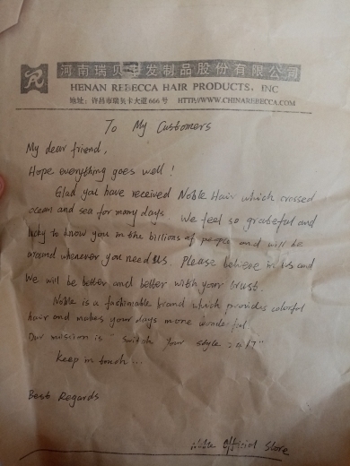 The hair looks really nice. The store sent some goodies and a nice note as well in the package. however delivery took long