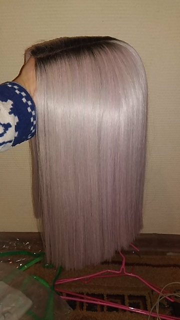 The wig is very beautiful, super, fully tracked, I ordered a gray color, but they live a little bit pinkish and I like it