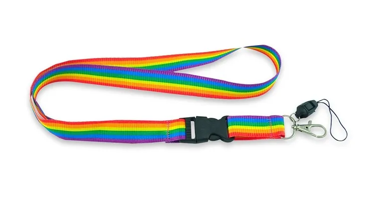 Our Wholesale LGBT Rainbow Striped Lanyard includes a breakaway buckle, a metal clip, and a string. Use it as a birthday giveaway or festive lanyard to clip on your cellphone, keys, ID, or ticket to keep them safe. Buy yours today and enjoy an amazing deal in Wholesale LGBT Rainbow Striped Lanyard.